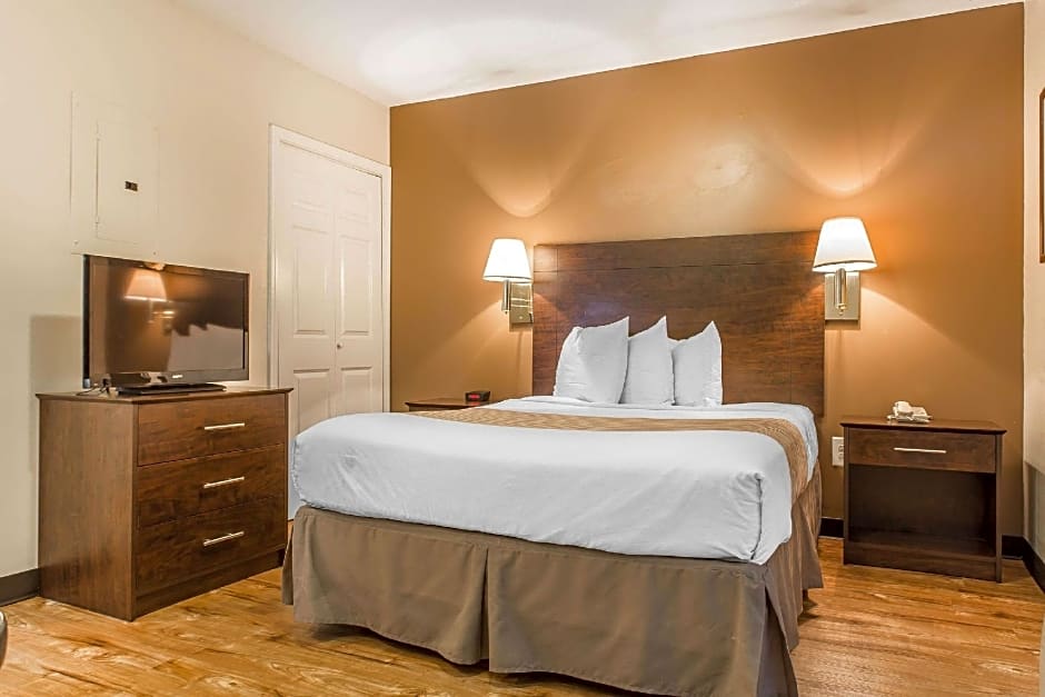 A cable TV with HBO® and a kitchenette with a refrigerator, microwave, and a stove are included in this nonsmoking room.
